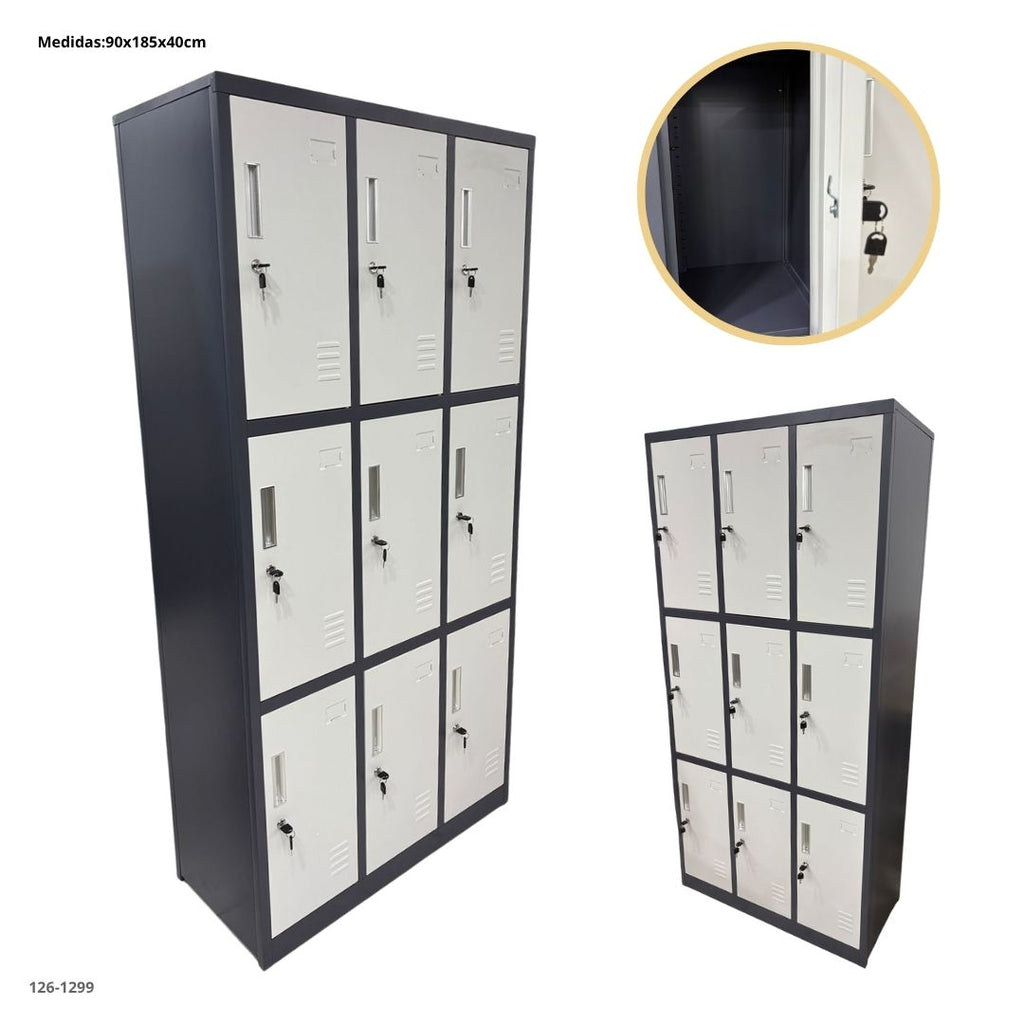 Diseñado para optimizar el almacenamiento personal en oficinas, gimnasios, talleres o instituciones, este mueble metálico de alta resistencia ofrece seguridad, orden y durabilidad. Su estructura robusta y diseño de tres columnas con tres niveles lo hacen funcional y estético.