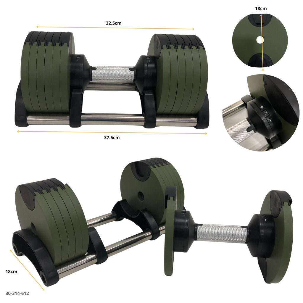 Su sistema de ajuste rápido permite seleccionar el peso deseado en segundos, evitando el uso de múltiples mancuernas tradicionales.