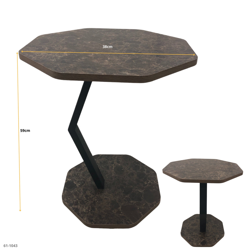 Una mesa auxiliar octagonal con un estilo elegante y sofisticado, perfecta para quienes buscan dar calidez y personalidad a sus espacios. Su acabado en mármol chocolate con vetas naturales crea un diseño único que aporta carácter y distinción, ideal para salas, dormitorios o áreas sociales con un toque contemporáneo.