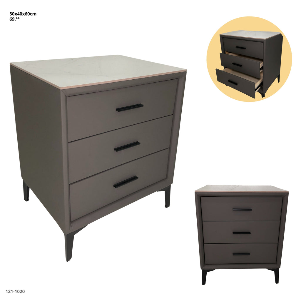 Cómoda compacta con 3 amplias gavetas y cubierta superior estilo mármol. Su diseño moderno y minimalista permite organizar el dormitorio con elegancia y funcionalidad.