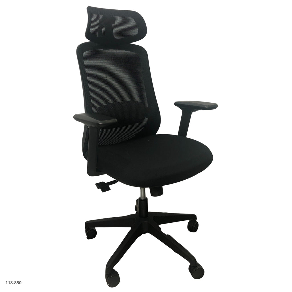 Silla ejecutiva ergonómica diseñada para brindar máximo confort en largas jornadas de trabajo. Cuenta con respaldo en malla transpirable, asiento acolchonado y cabecera ajustable para un soporte óptimo.