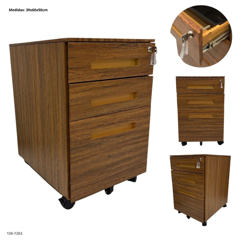 Cada gaveta cuenta con manijas ergonómicas y sistema de bloqueo superior con llave, brindando seguridad y privacidad para documentos importantes.
