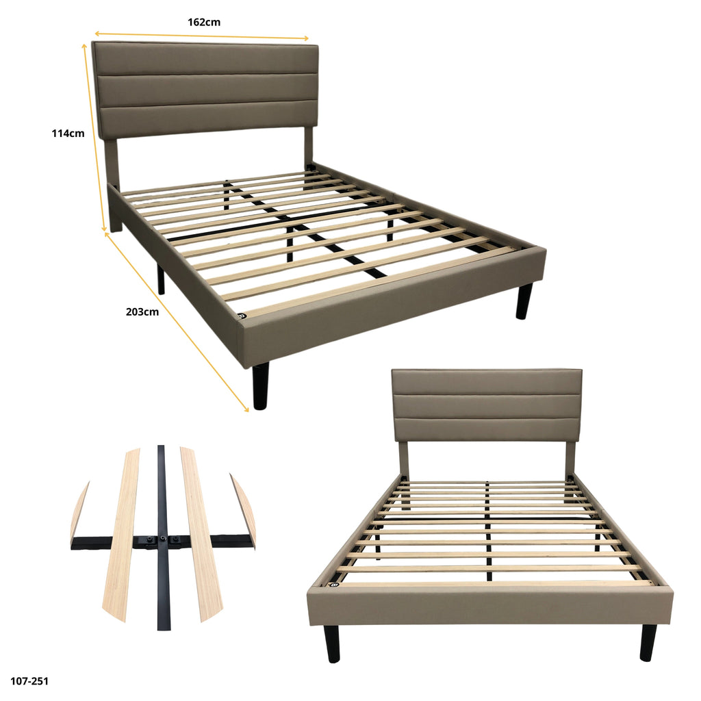 Cama con Cabecera Tapizada y Base Metálica