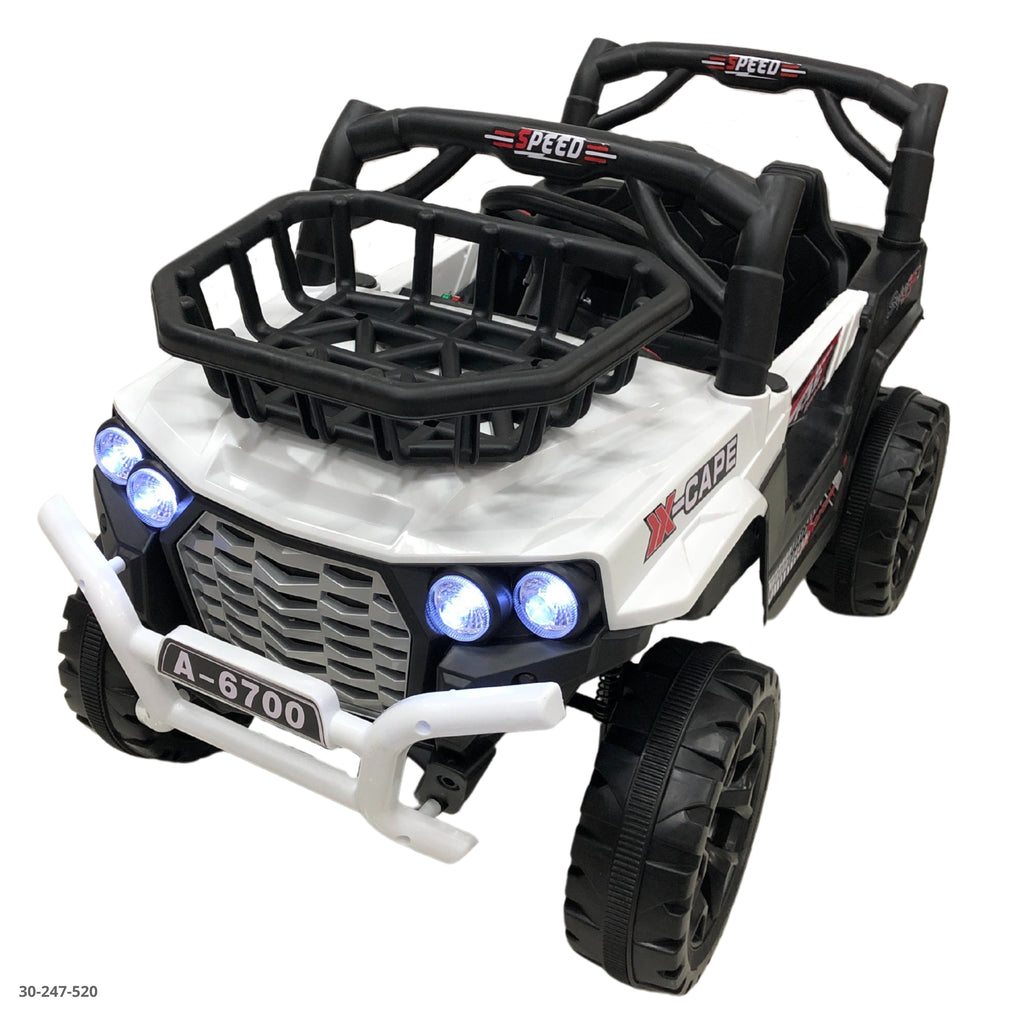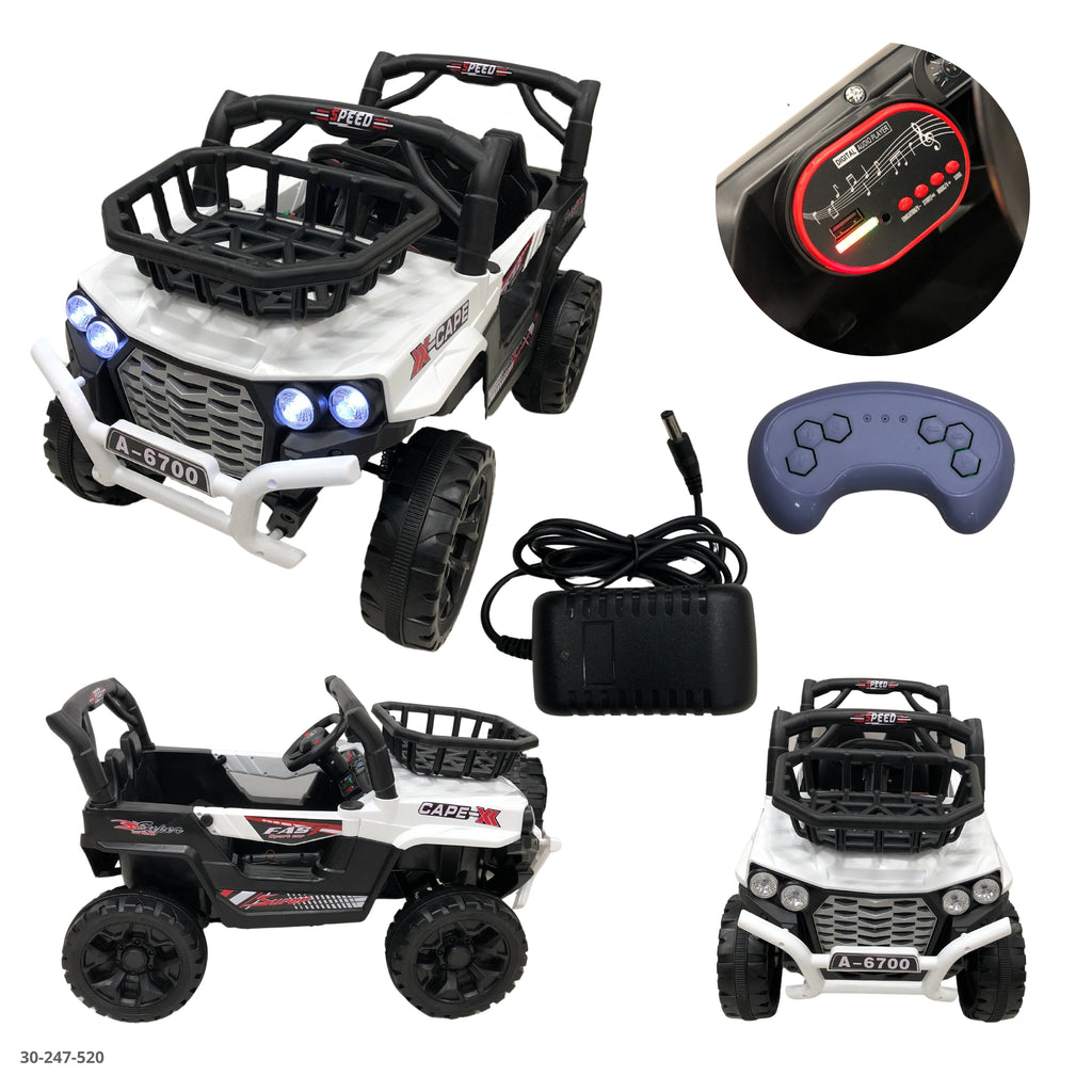 Elegante, moderno y brillante: así es este carro eléctrico blanco. Ideal para niños que aman destacar con estilo. Con batería recargable, luces LED y mando a distancia, la diversión está garantizada. ¡Clase y aventura en un solo vehículo! ????