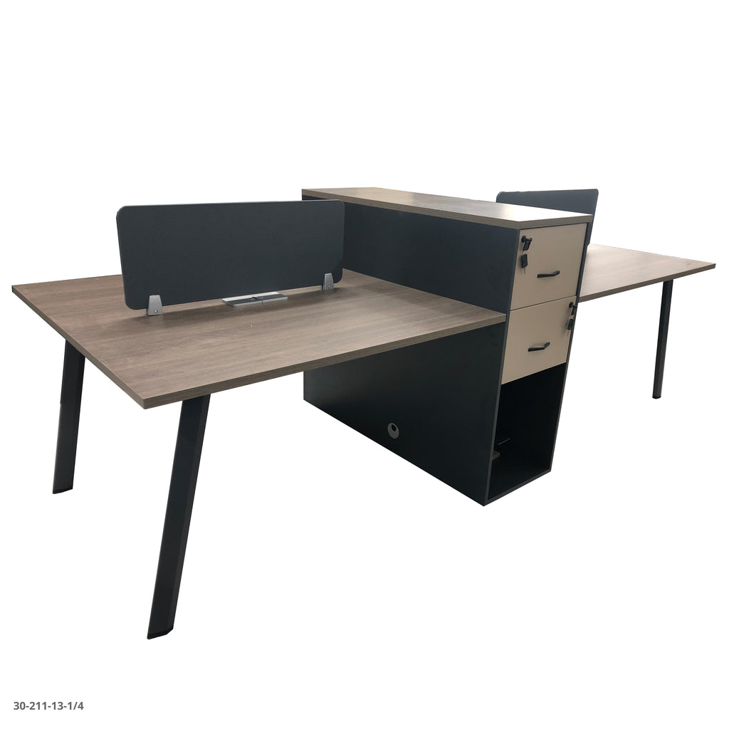 Este escritorio doble con división y cajonera central es perfecto para optimizar el espacio en oficinas modernas. Cada usuario disfruta de privacidad y orden gracias al panel divisor y almacenamiento compartido. Ideal para equipos que trabajan en sinergia, sin perder estilo ni funcionalidad. ¡Equipa tu oficina con inteligencia!