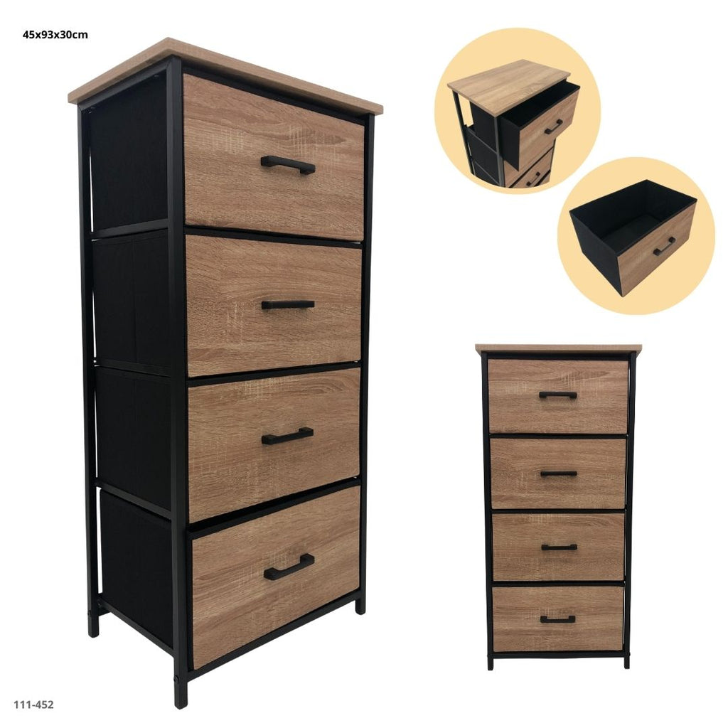 Incluye cajones textiles rígidos extraíbles, ideales para almacenar ropa, accesorios o documentos.