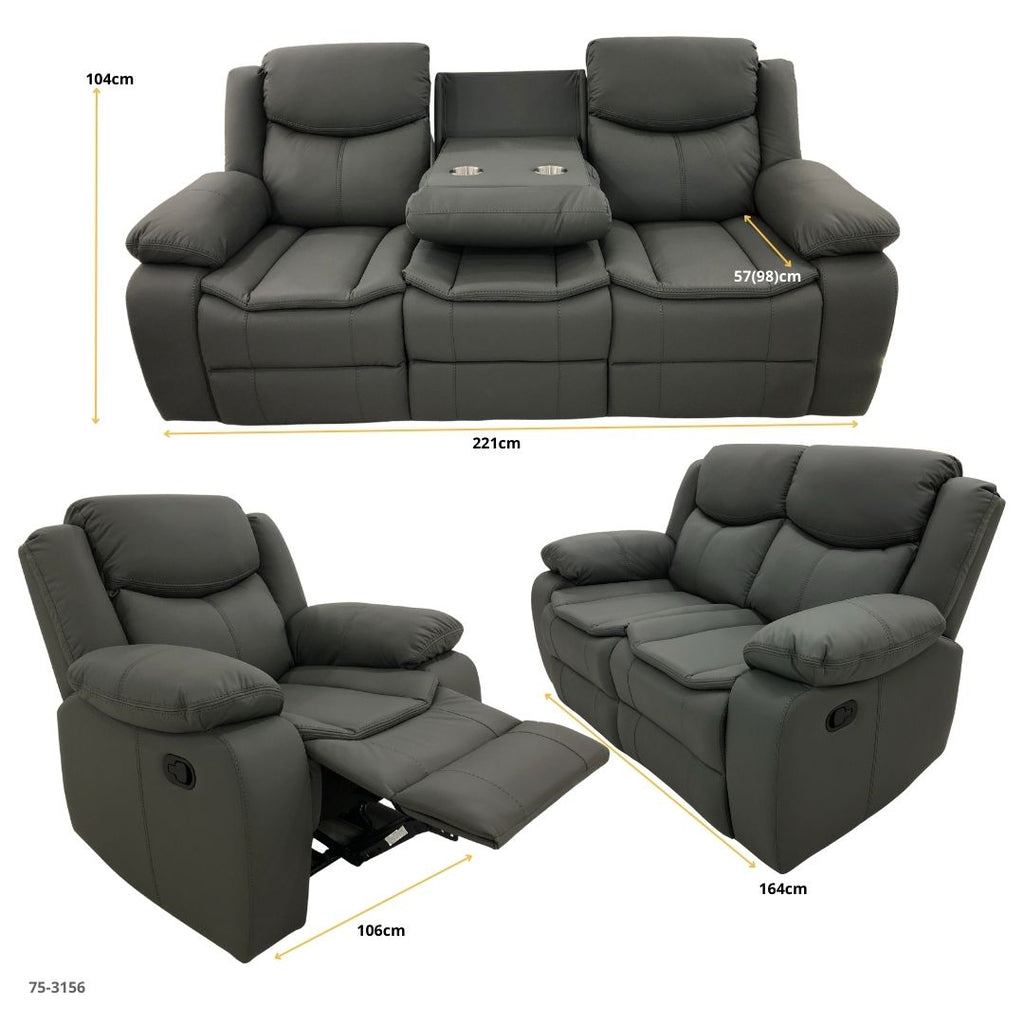 JUEGO DE SOFA GRIS OSCURO RECLINABLE VALERIE DE 3 PZA TAPICERIA CUERO DE AIRE