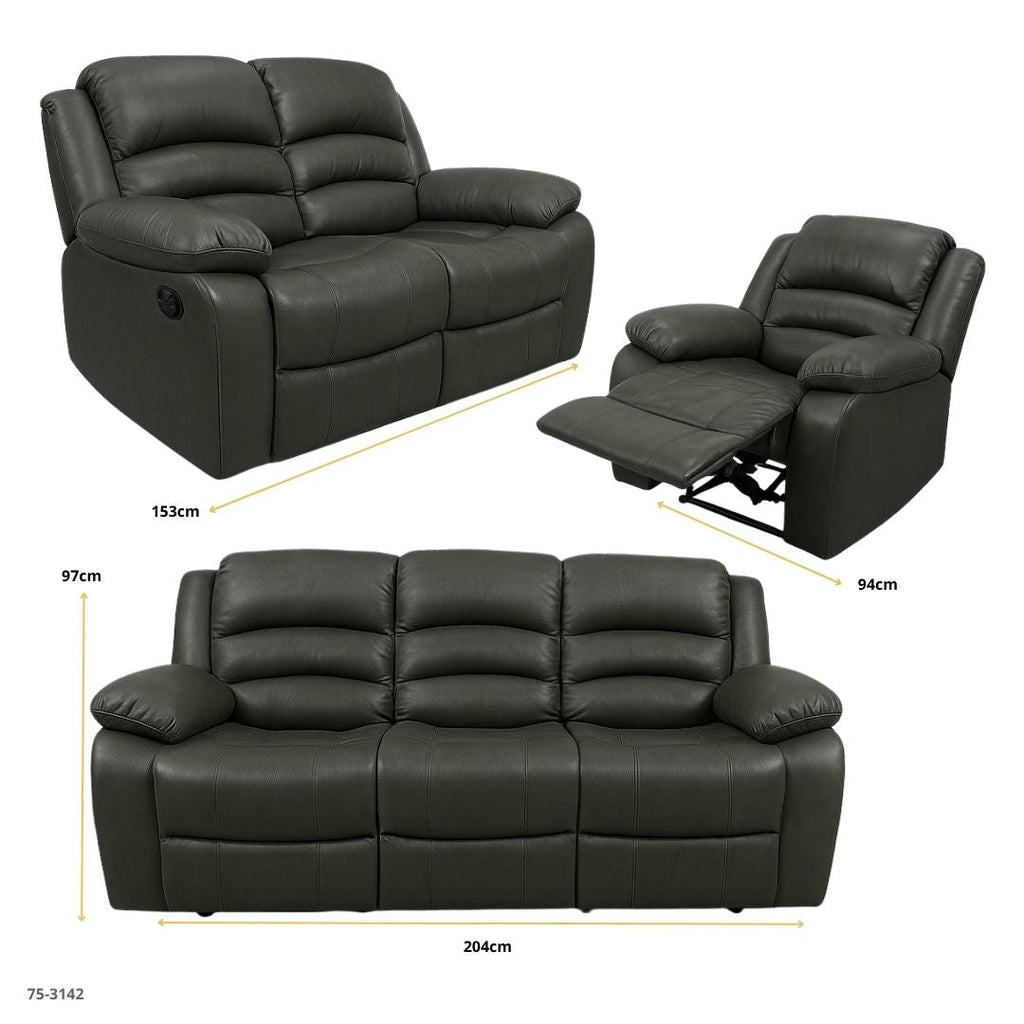 Este set de sofás reclinables 3-2-1 combina diseño contemporáneo y máxima comodidad.
