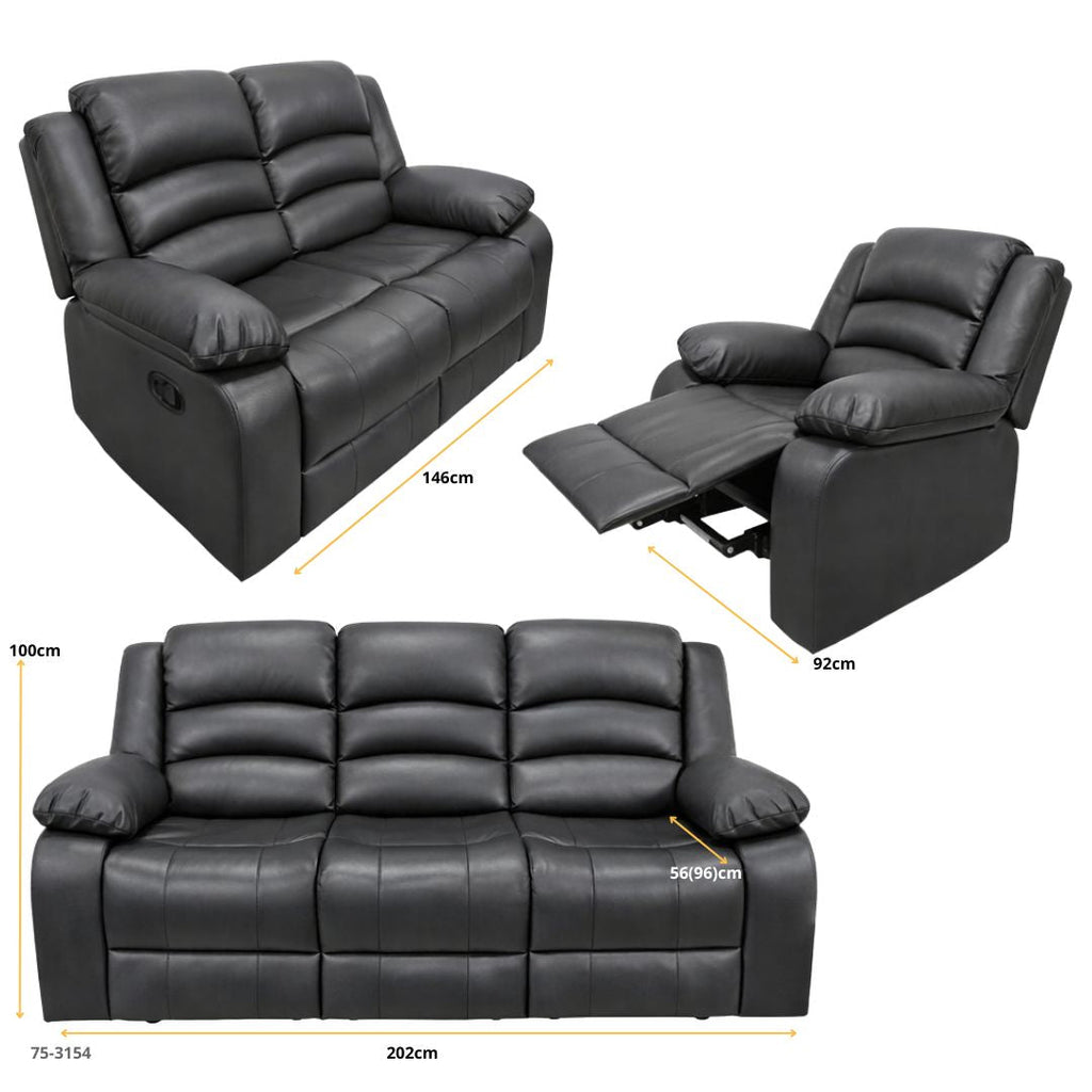 JUEGO DE SOFA GRIS RECLINABLE DE 3 PZA CUERO DE AIRE