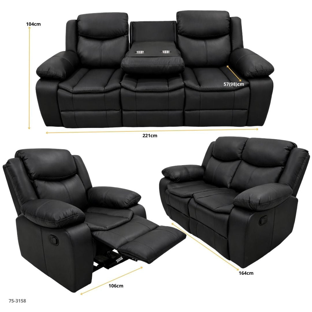 JUEGO DE SOFA NEGRO RECLINABLE VALERIE DE 3 PZA TAPICERIA CUERO DE AIRE