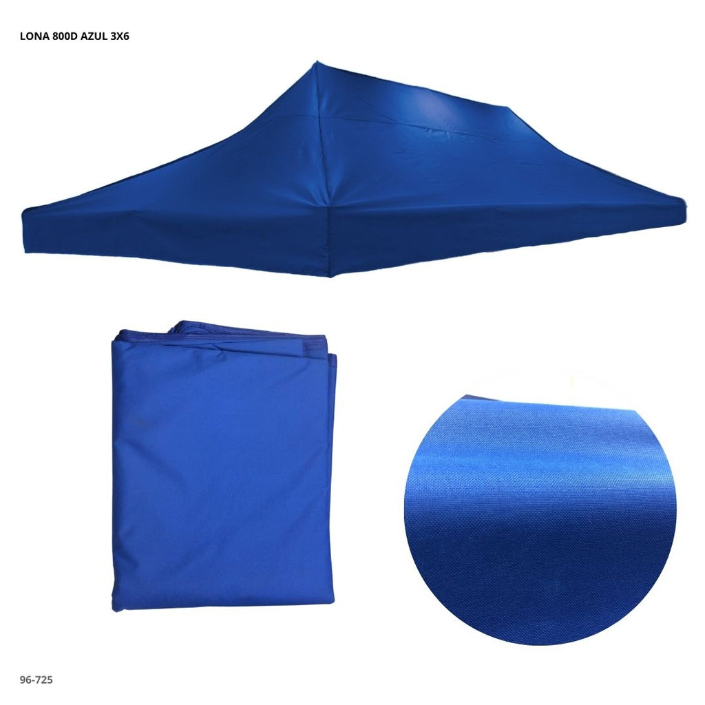 Lona de repuesto fabricada en material 800D de alta resistencia, ideal para estructuras de 3x6 metros. Diseñada para ofrecer mayor durabilidad y protección contra el sol y la lluvia ligera.