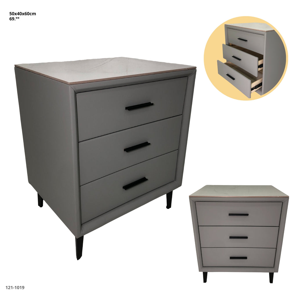 Cómoda práctica de 3 gavetas espaciosas, ideal para mantener organizado tu dormitorio. Su estilo moderno en color gris con tiradores negros combina perfectamente con diferentes ambientes.