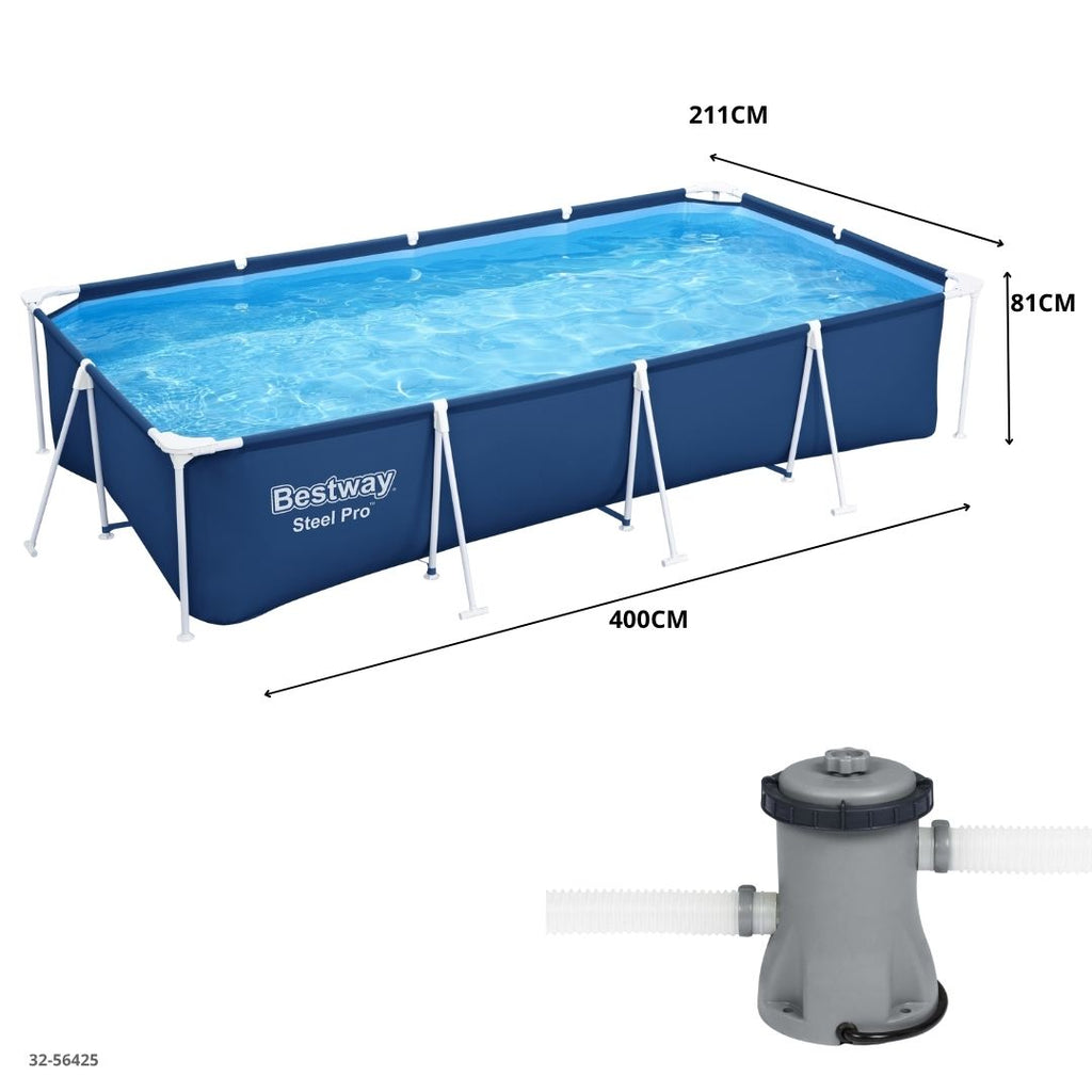 Disfruta del verano con la Piscina Bestway 56425, una opción estructural rectangular diseñada para ofrecer espacio, resistencia y calidad en tu patio o jardín. Su marco metálico antivandálico y su revestimiento resistente a pinchazos y rayos UV la hacen duradera y estable, ideal para disfrutar con familia y amigos sin complicaciones.