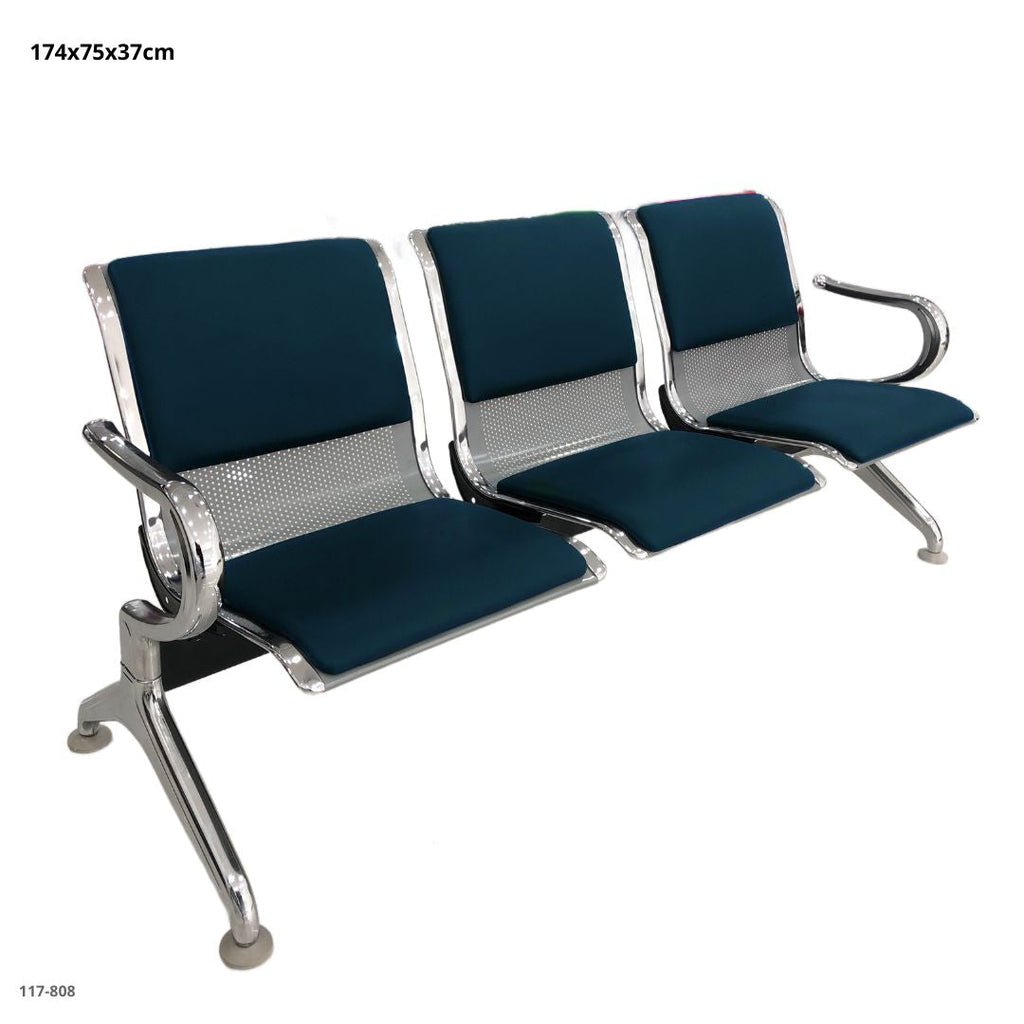 Material: Asiento y respaldo acolchados + estructura metálica perforada y brazos de acero cromado