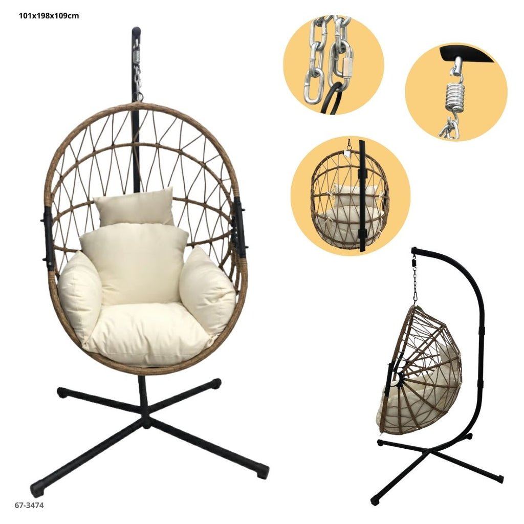 Su estructura ovalada, realizada en un atractivo color chocolate, invita a un descanso placentero, mientras que los materiales de alta calidad garantizan durabilidad y resistencia. Ideal para interiores y exteriores, esta silla no solo realza la decoración de cualquier ambiente, sino que también ofrece una experiencia de balanceo única que te hará sentir en un oasis de paz.