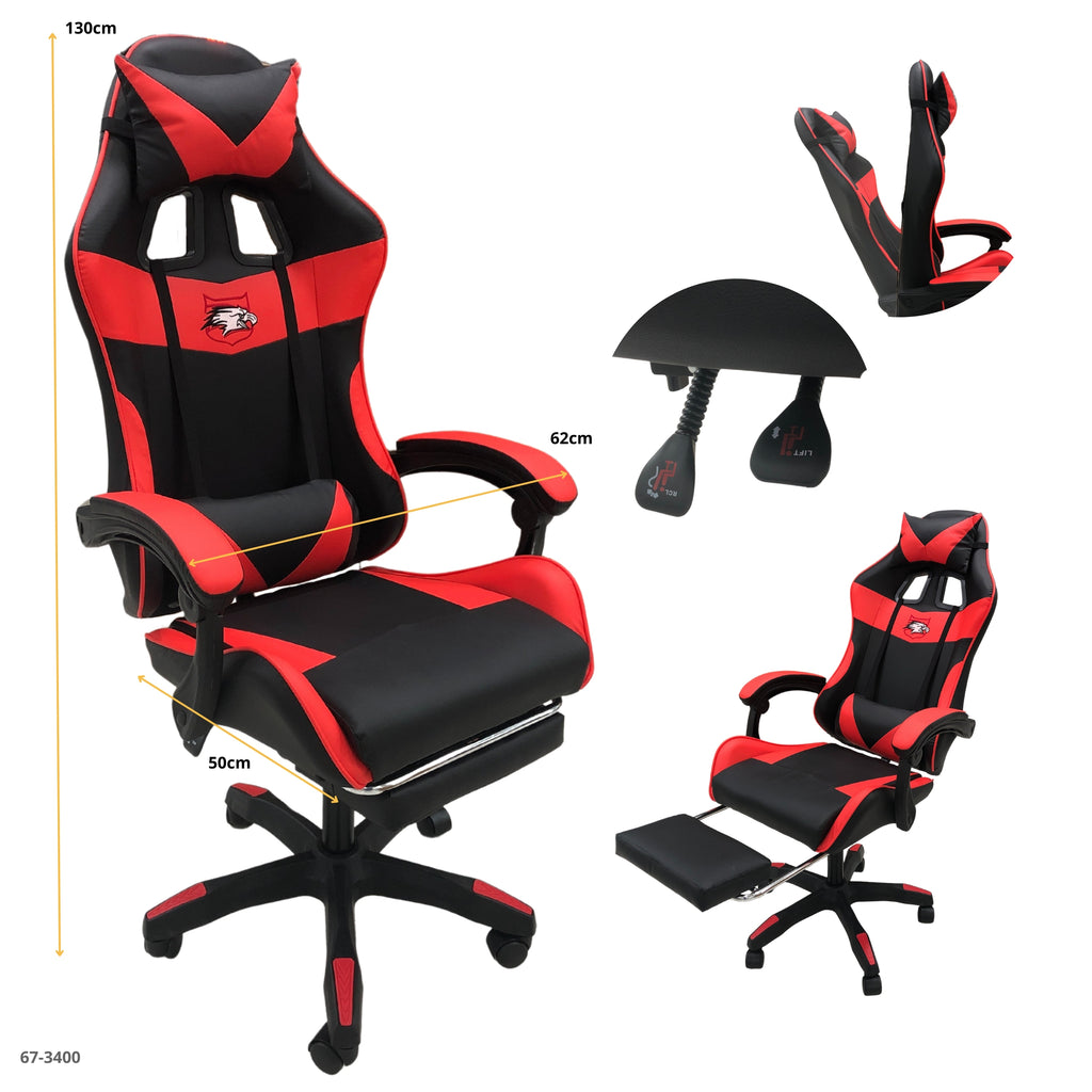 ¡Potencia tu experiencia gamer con estilo y comodidad! Esta silla ergonómica combina diseño deportivo con funcionalidad total: respaldo reclinable, reposapiés extensible y soporte lumbar para largas sesiones sin fatiga. Con detalles en rojo y negro que imponen presencia, es perfecta tanto para jugar como para trabajar. ¡Haz del confort tu mejor estrategia!
