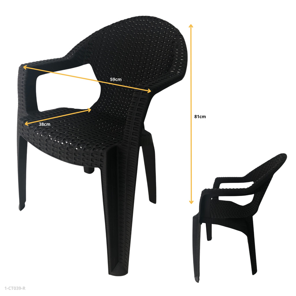Silla plástica tipo rattan con diseño moderno y elegante, perfecta para interiores y exteriores.