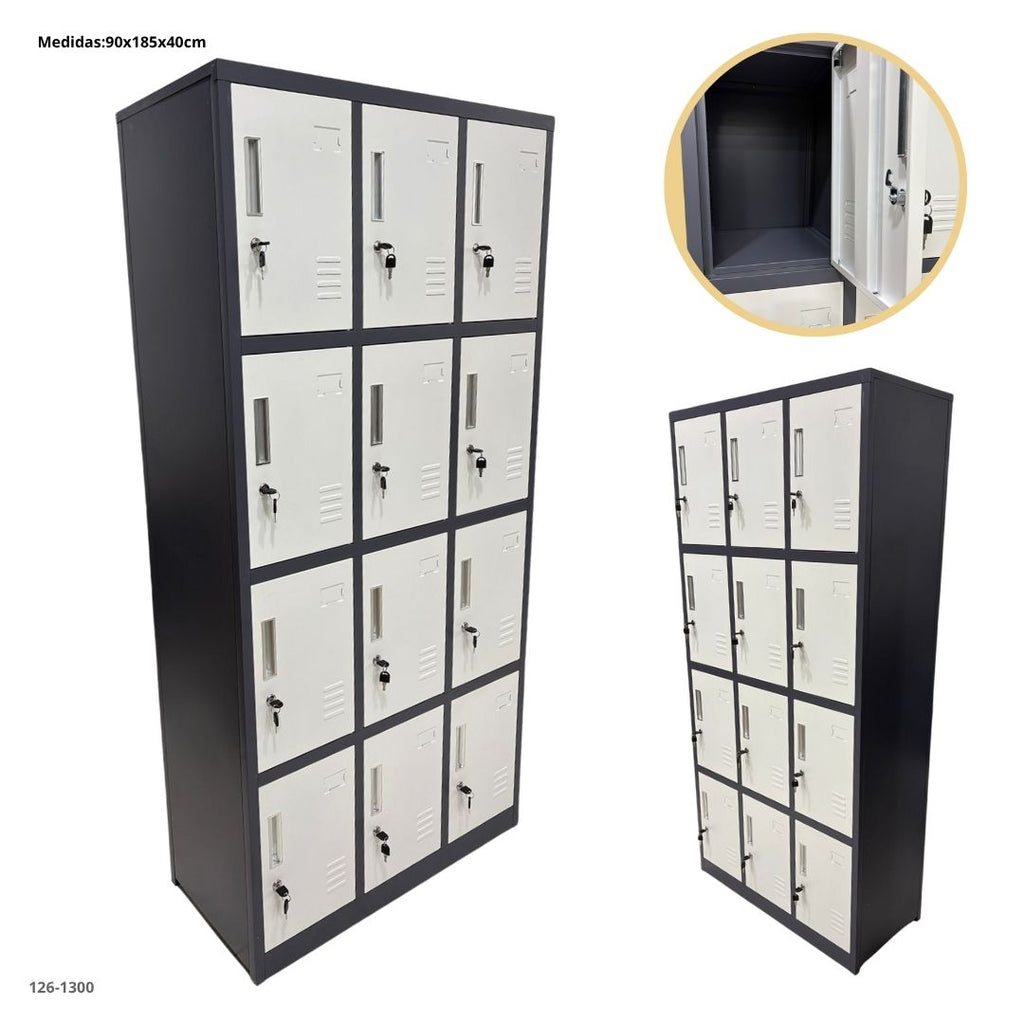 CASILLERO METALICO 12 PUERTAS GRIS OSCURO/BLANCO PLEGABLE