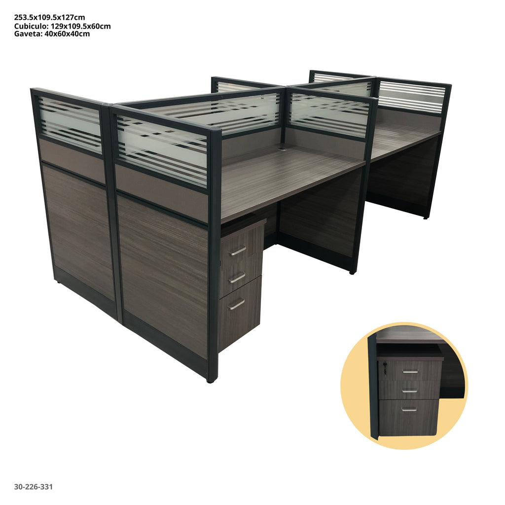 ESTACION DE TRABAJO 4 PUESTOS CON 4 GABINETE