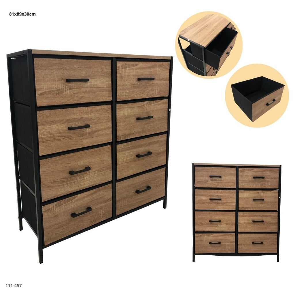 Este organizador de 8 cajones es perfecto para mantener tu hogar impecable, con un diseño moderno que combina metal negro y frente en acabado madera.