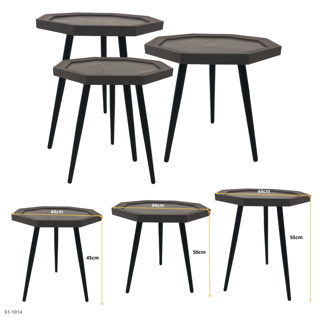 Este set de mesas auxiliares octagonales es perfecto para dar un toque moderno y práctico a tu sala o área social. Su diseño geométrico aporta estilo contemporáneo, mientras que su estructura ligera las hace fáciles de mover y acomodar según la ocasión.