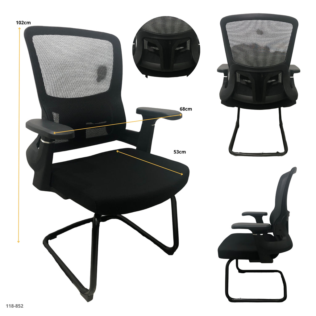 Ideal para oficinas, salas de reunión o espacios de atención al cliente gracias a su estilo profesional y su capacidad de soportar hasta 450 libras (aprox. 204 kg).