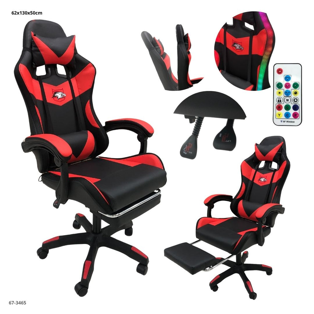 ?? Poder, confort y luces que impresionan. Esta silla gamer con iluminación LED RGB integrada no solo roba miradas, también ofrece máxima comodidad con respaldo reclinable, reposapiés y soporte lumbar. Controla los colores con su control remoto y crea el ambiente perfecto para cada partida. ¡Haz que tu espacio brille con actitud y rendimiento total!