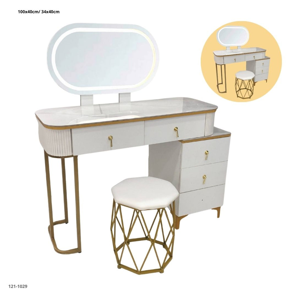 VANITY CON ESPEJO/LUZ/TABURETE 100*40CM Y MESITA DE 3 GAVETAS 34*40CM